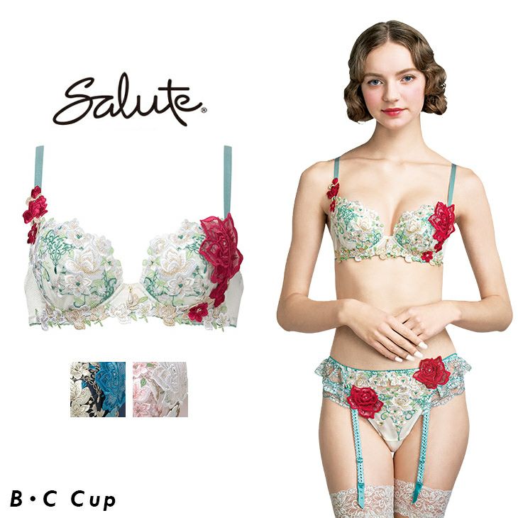 サルート Salute ブラジャー プッシュアップブラ 3/4 BCカップブラ 下着 ランジェリー ワコール Wacoal 花柄 フラワー柄 スワロフスキー セクシー 16シリーズ btj416