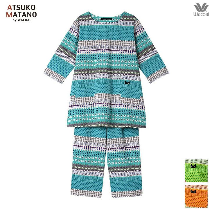 ワコール wacoal マタノアツコ ルームウェア hdt219 部屋着 パジャマ ナイトウェア パジャマ ボーダー スペイン 半袖 ネコ 猫 ねこ 春夏 コットン 2504