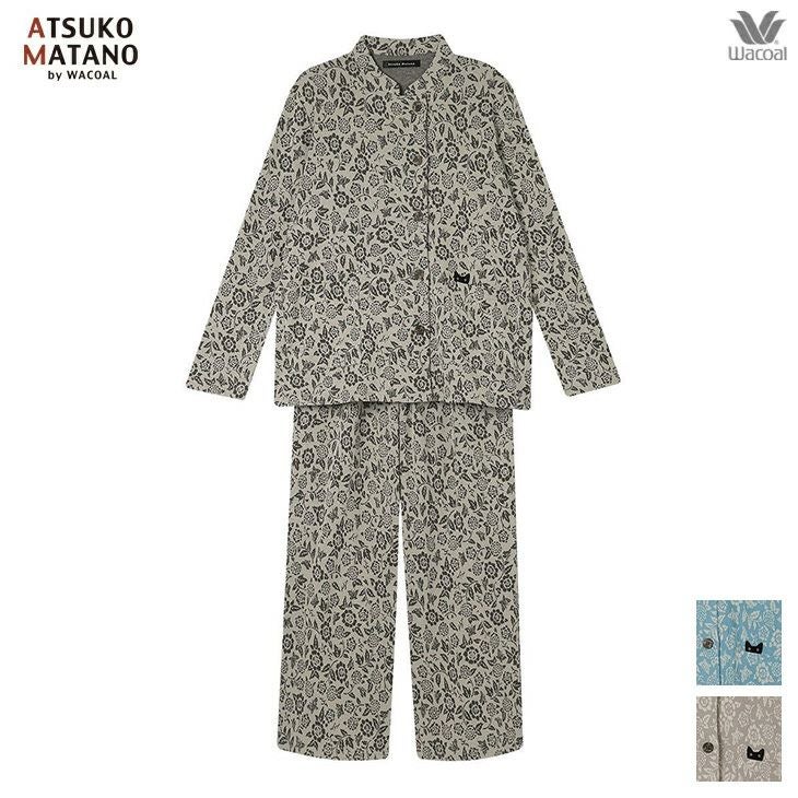 ワコール wacoal マタノアツコ ルームウェア hdx597 部屋着 パジャマ ナイトウェア パジャマ ネコ 長袖 長ズボン 秋冬 コットン 2509