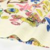 森の不思議な植物に集まる鳥やキツネたちを表現した柄