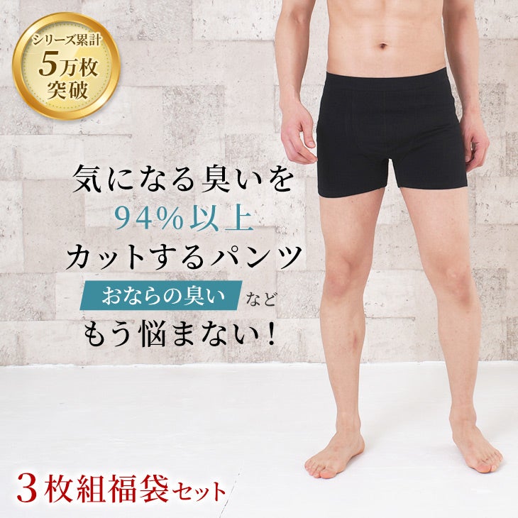 超強力活性炭でおならなどの気になる臭いを94%以上カット! 【4月末再入荷】 おなら消臭パンツ 消臭パンツ 消臭下着 消臭ショーツ 消臭インナー エチケットパンツ メンズボクサー 男性用 3枚組セット