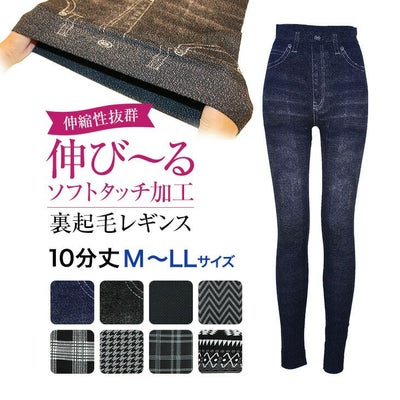 裏起毛レギンス デニム風 チェック柄 ヘリンボーン レギンス レディース ソフトタッチ加工 伸縮性抜群 くるぶし丈 全2色 M/Lのレビューを書く